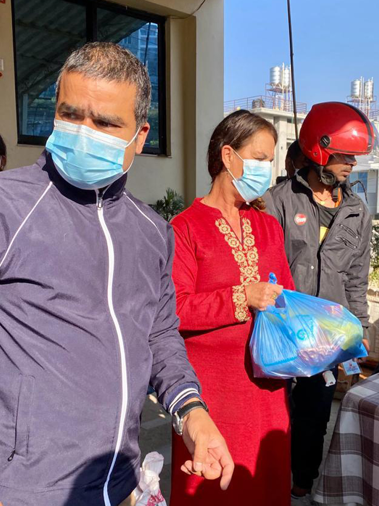 Depuis le début de la pandémie, les distributions alimentaires de la Fondation ont aidé plus de 350 familles à Khokana, village situé près de la capitale du Népal, Katmandou.